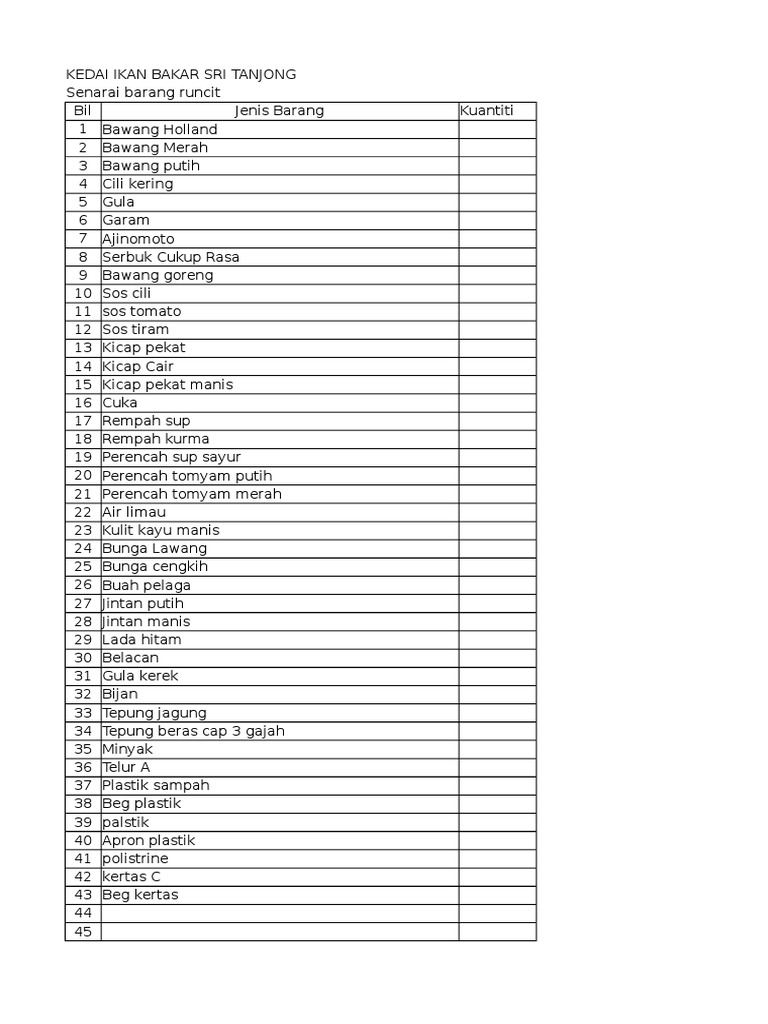 Senarai Barang Keperluan Harian Pdf Senarai Harga Barang Keperluan Harian